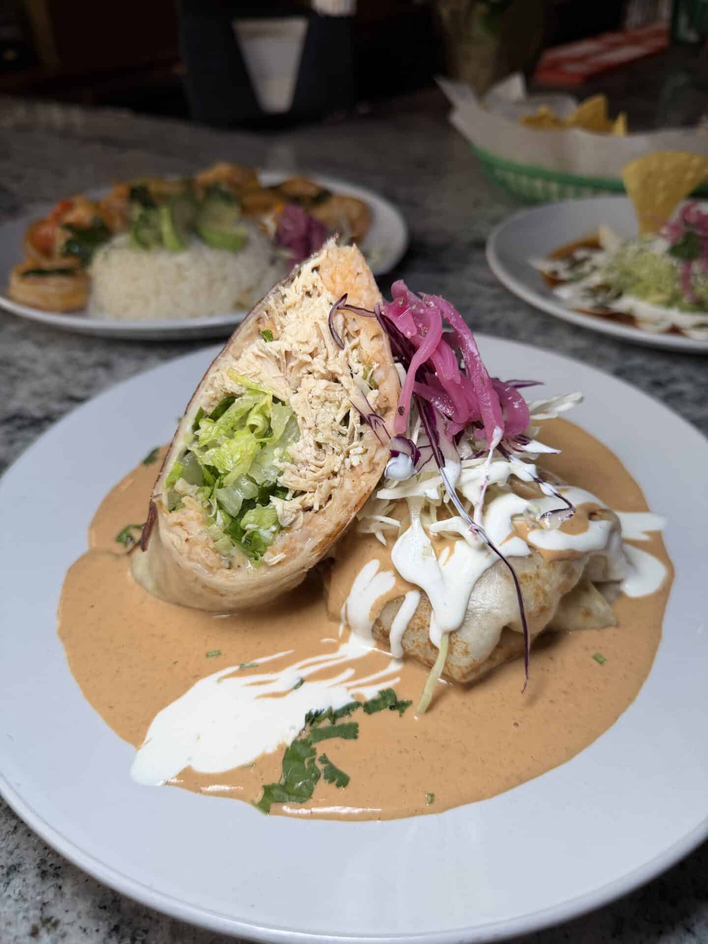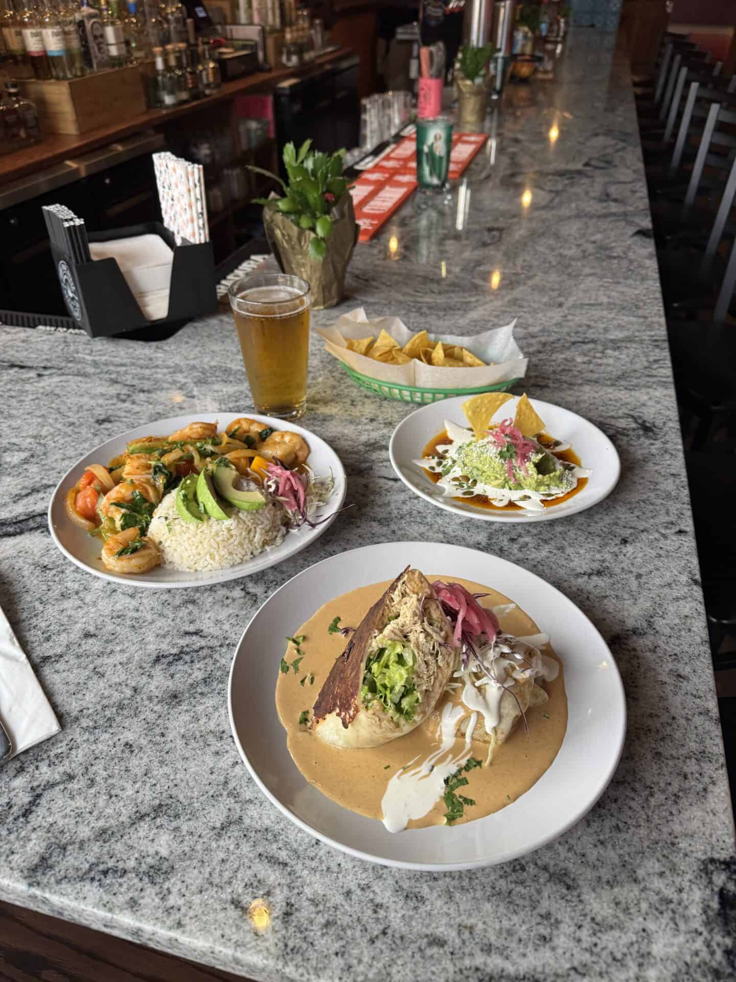 On my visit, I tried the tequila shrimp (Camarones Al Tequila), a burrito, and the guacamole.
