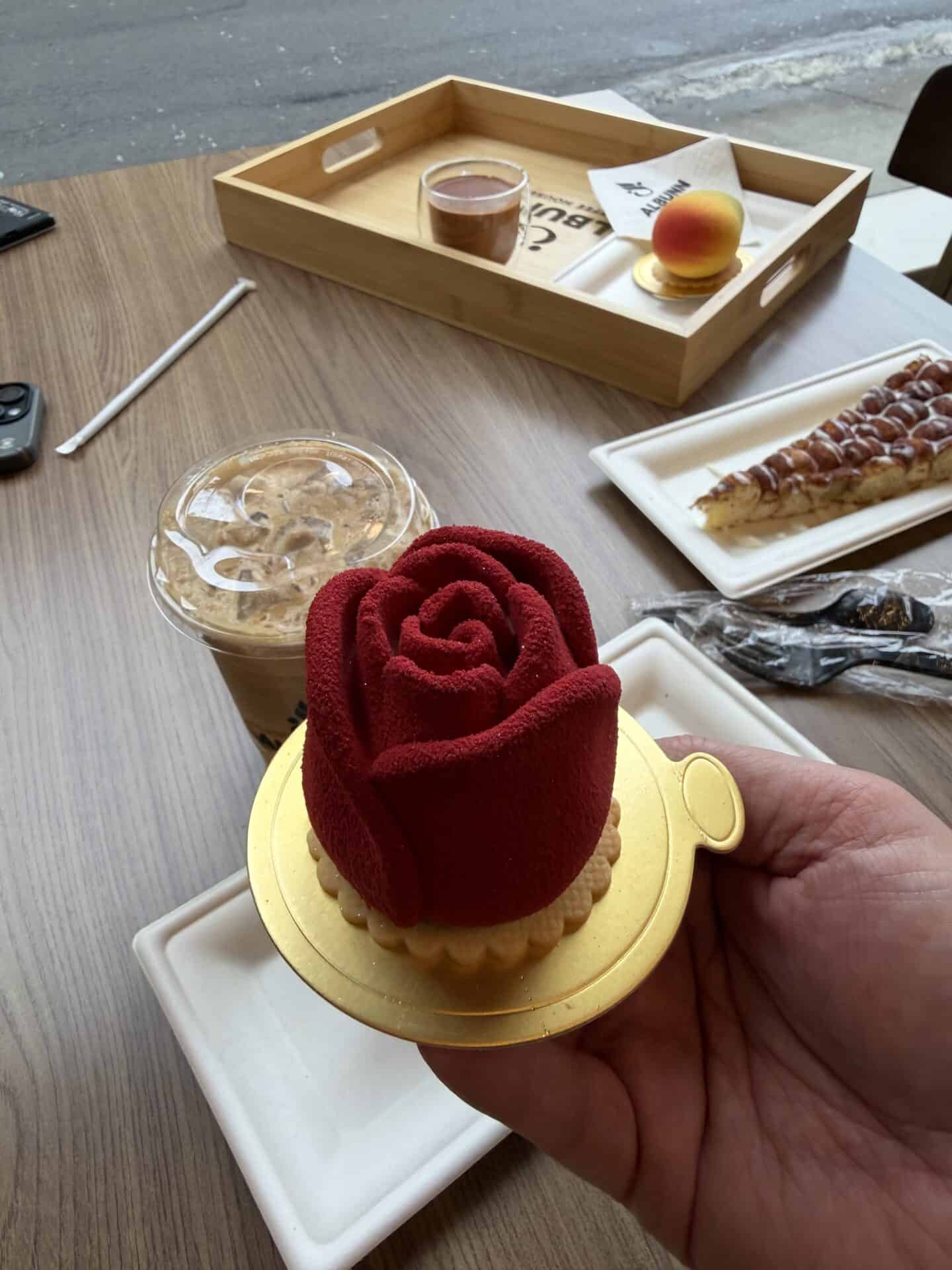 Right now, the Mango dessert seems to be the hottest one on the menu. But my personal favorite was a chocolate mousse and raspberry creation shaped like a rose. The balance of chocolate, fruit, and delicate pastry made it a standout, and honestly, it’s the best I’ve had in this style. These desserts are the perfect companion for a coffee or tea and make for an Instagram-worthy visit.