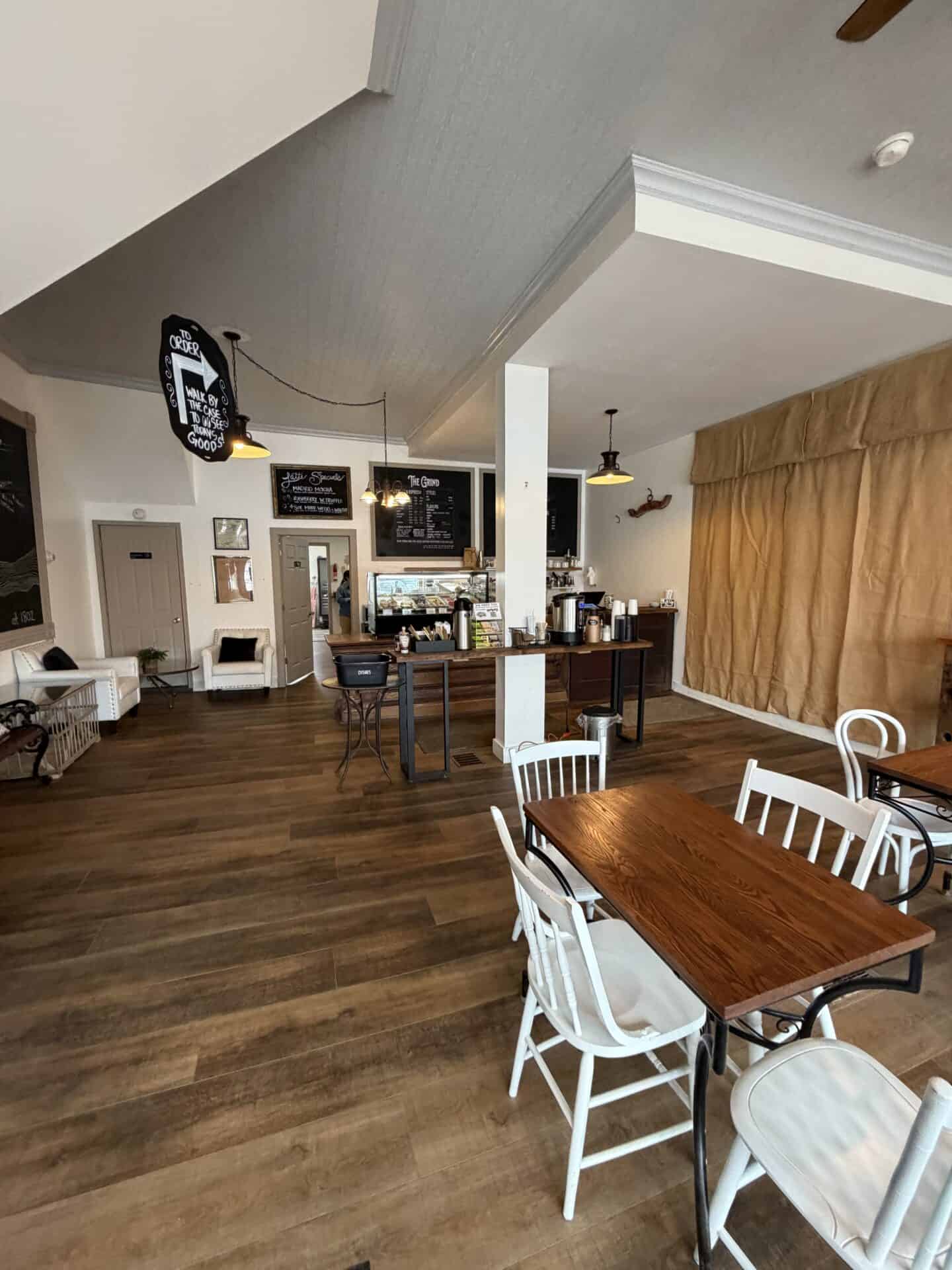 There are certain places you can picture before you ever walk through the door. The Grasse River Grind is one of them — but not in a generic way. Close your eyes and think about exactly the kind of small town coffee shop you’d want to exist in a place like Madrid, New York. Large window up front letting the light in. An old door you have to actually push open. Chalkboard menu. A display case lined with pastries. Exposed brick. Enough seating for the regulars plus a few strangers. That’s the Grasse River Grind.